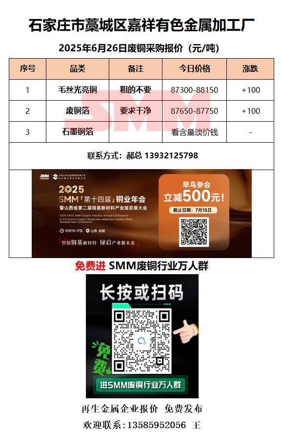 6月26日嘉祥有色金属 废铜采购报价
