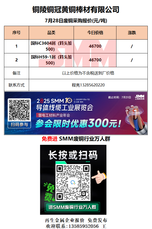 7月28日铜陵铜冠 废铜采购报价