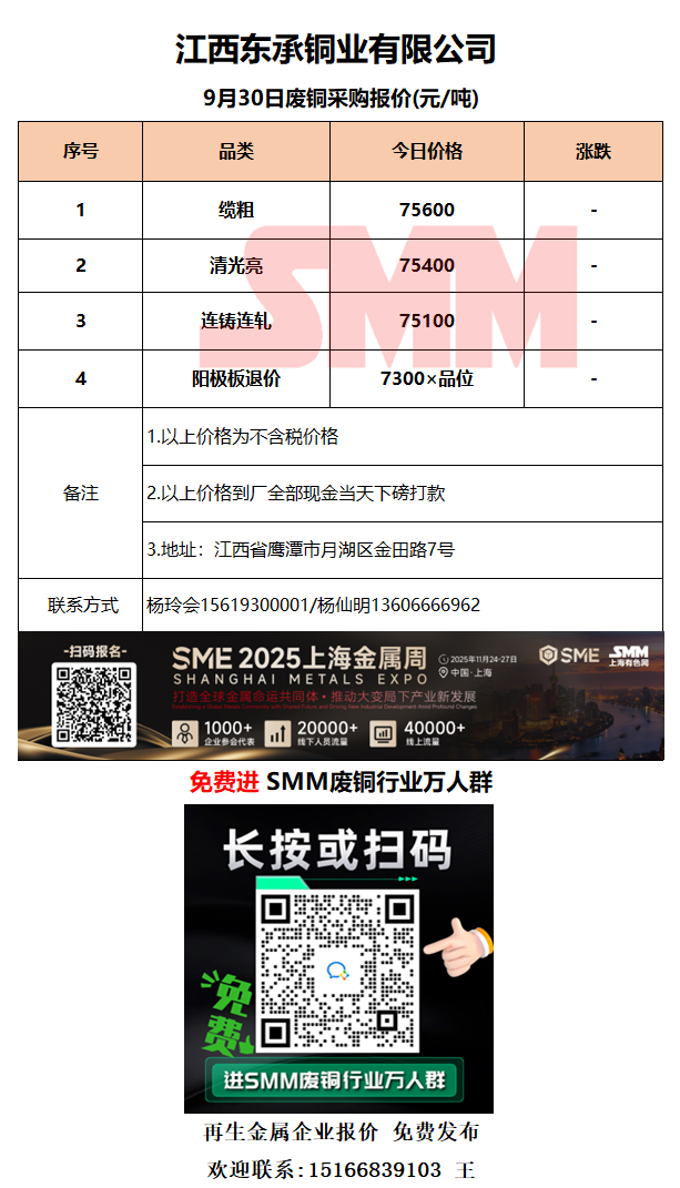今日江西东承 废铜采购报价已更新,有货的朋友欢迎联系我们!