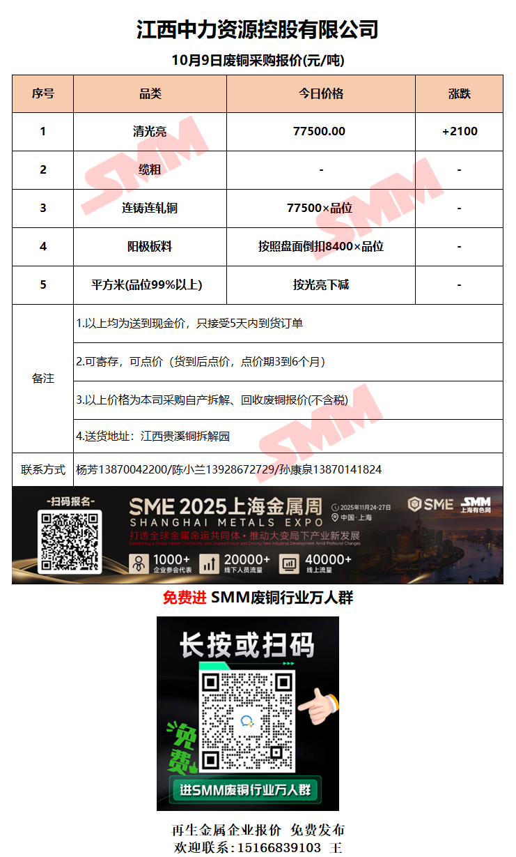 今日江西中力 废铜采购报价已更新,有货的朋友欢迎联系我们!