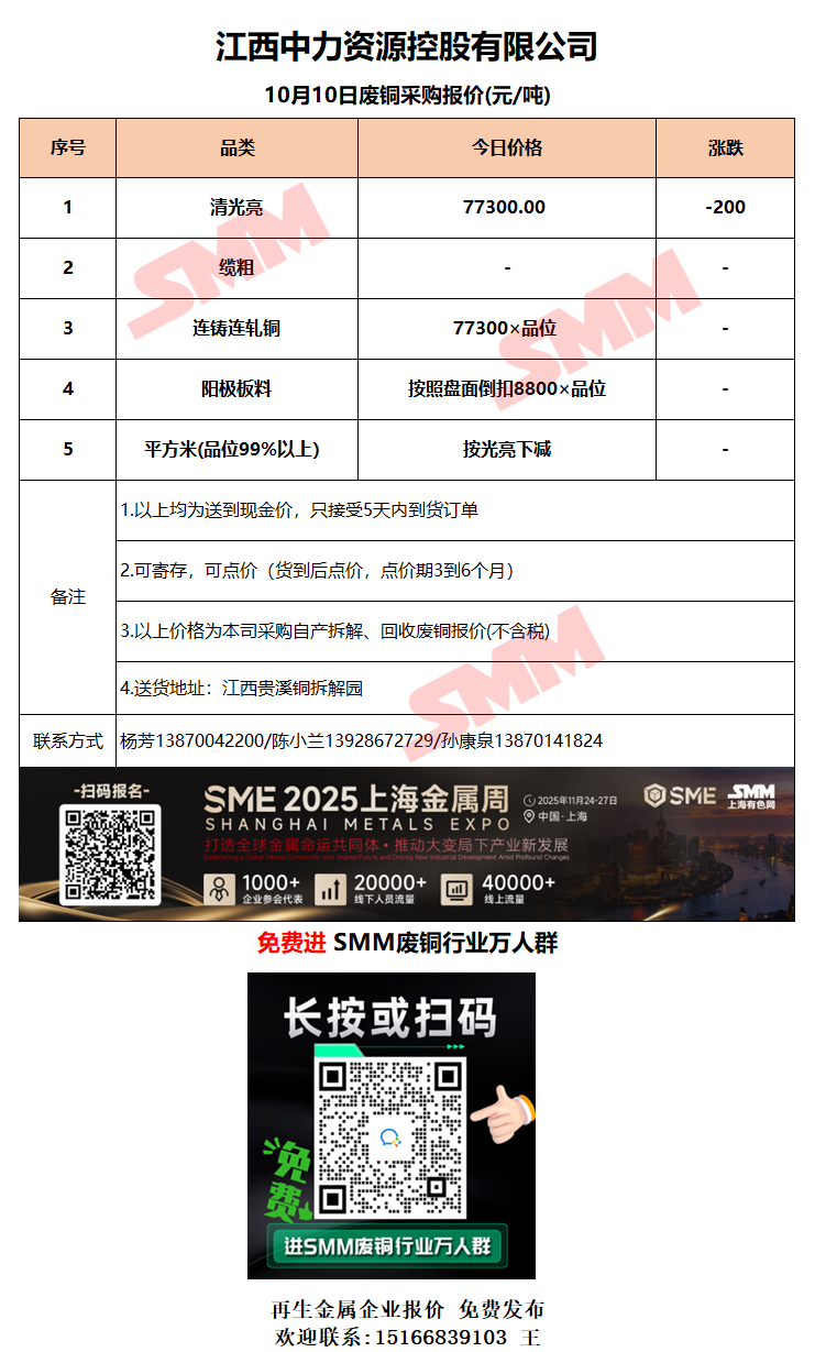 今日江西中力 废铜采购报价已更新,有货的朋友欢迎联系我们!