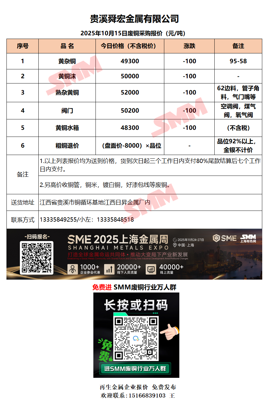 今日贵溪舜宏 废铜采购报价已更新,有货的朋友欢迎联系我们!