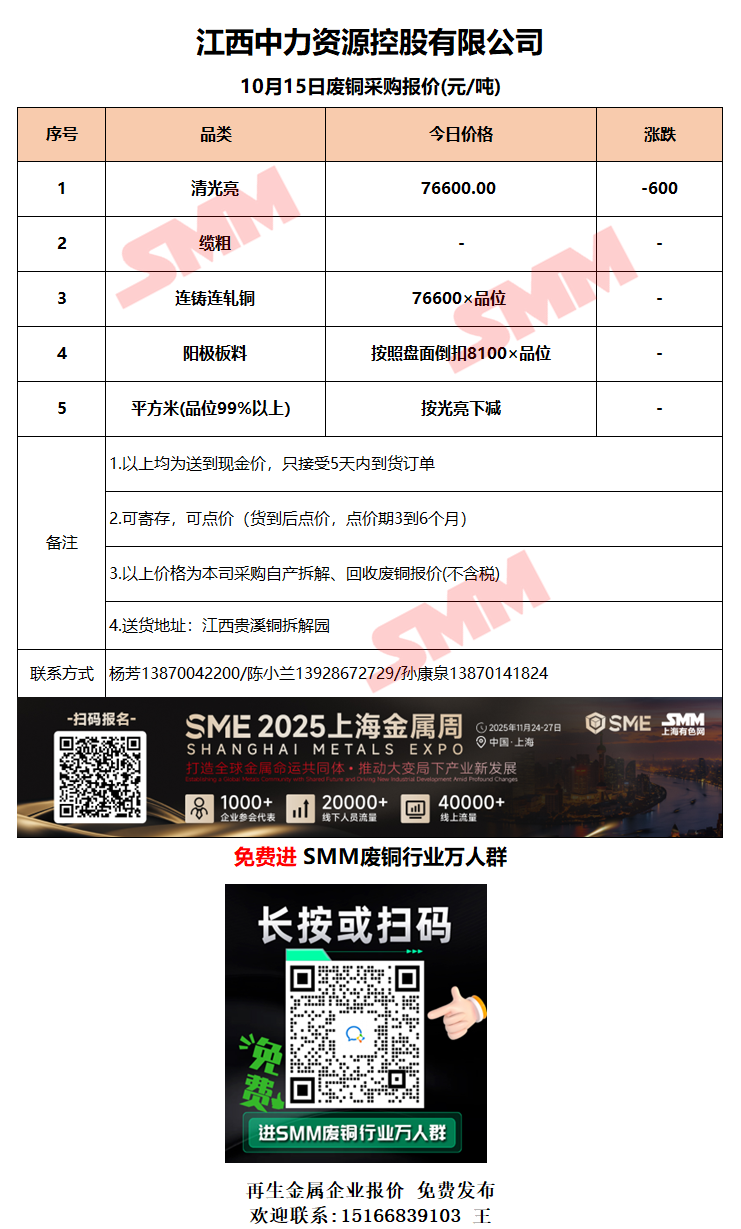 今日江西中力 废铜采购报价已更新,有货的朋友欢迎联系我们!