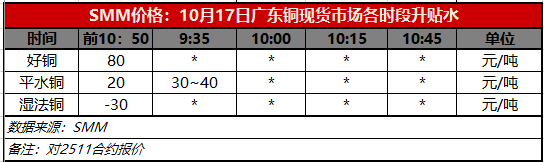 10月17日广东铜现货市场各时段升贴水(第一时段9:30)【SMM价格】