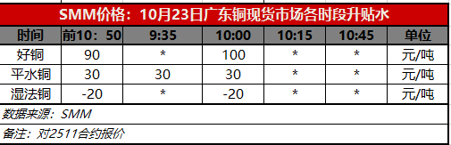 10月23日广东铜现货市场各时段升贴水(第二时段10:00)【SMM价格】