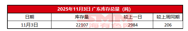 2025年11月3日广东电解铜库存【SMM数据】