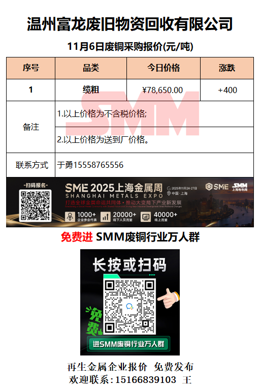 今日温州富龙废旧 废铜采购报价已更新,有货的朋友欢迎联系我们!