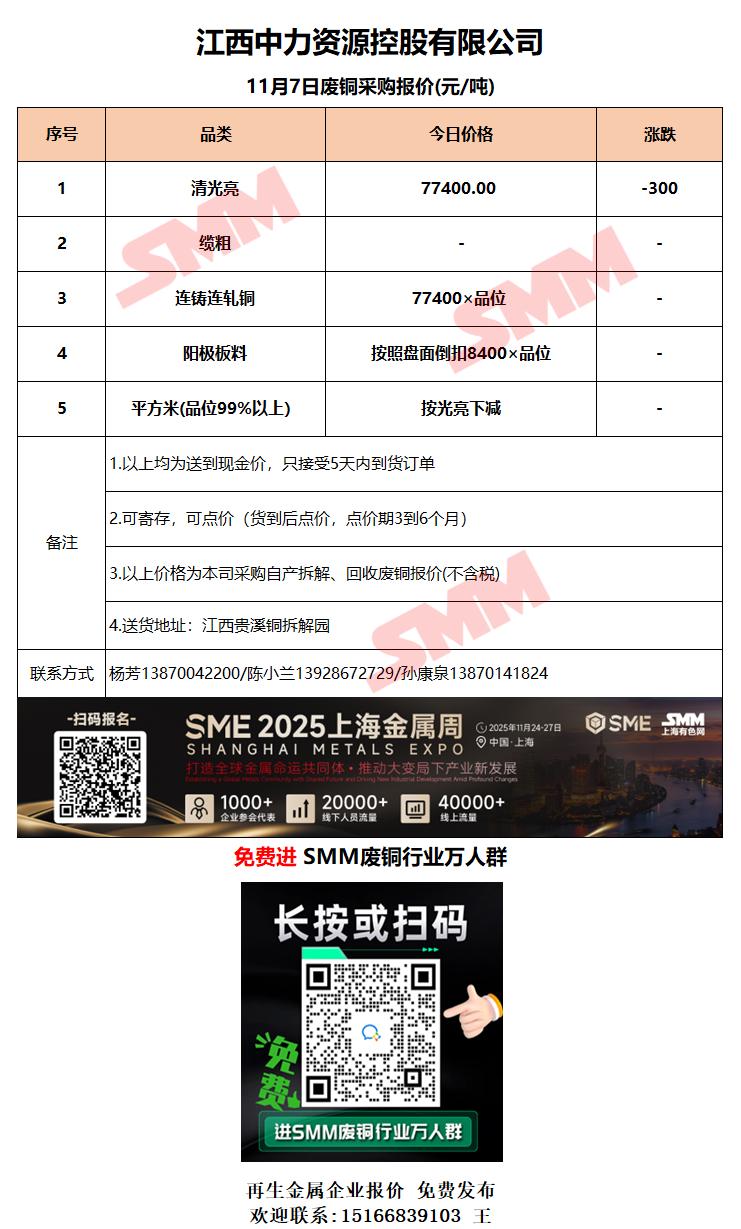 今日江西中力 废铜采购报价已更新,有货的朋友欢迎联系我们!