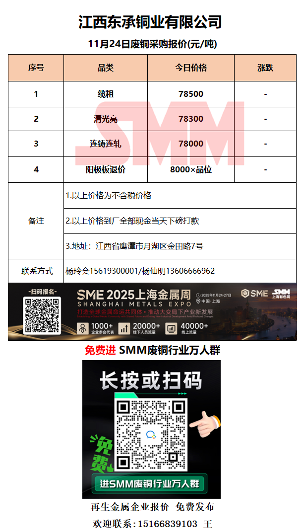 11月24日江西东承 废铜采购报价