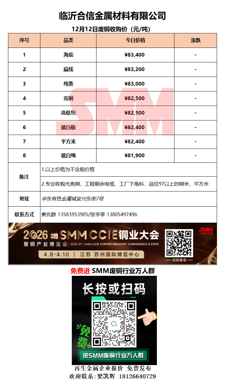 12月12日高诺(衡阳)铜业 废铜采购报价