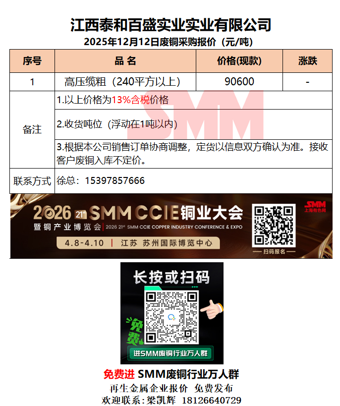 12月12日高诺(衡阳)铜业 废铜采购报价