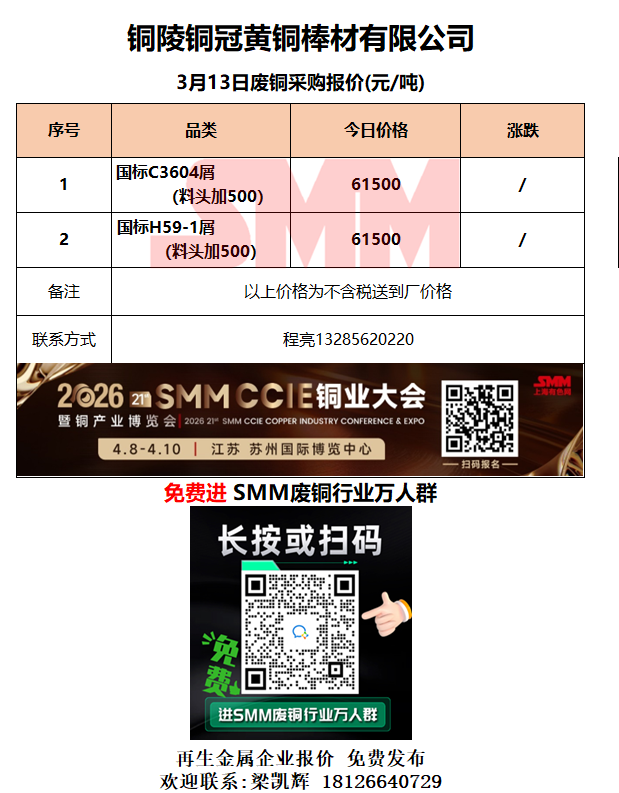今日铜陵铜冠 废铜采购报价已更新,有货的朋友欢迎联系我们!