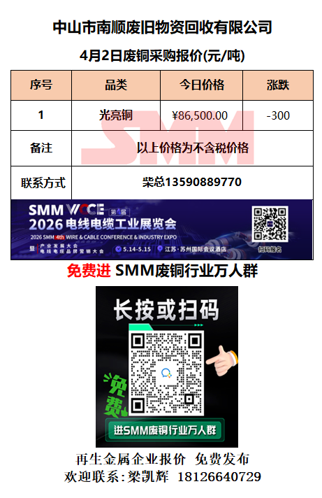 4月2日高诺(衡阳)铜业 废铜采购报价