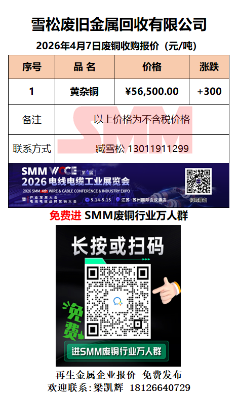 4月7日雪松废旧 废铜采购报价