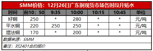 12月26日广东铜现货市场各时段升贴水(第二时段10:00)【SMM价格】