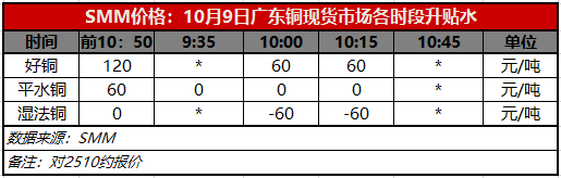 10月9日广东铜现货市场各时段升贴水(第三时段10:15)【SMM价格】