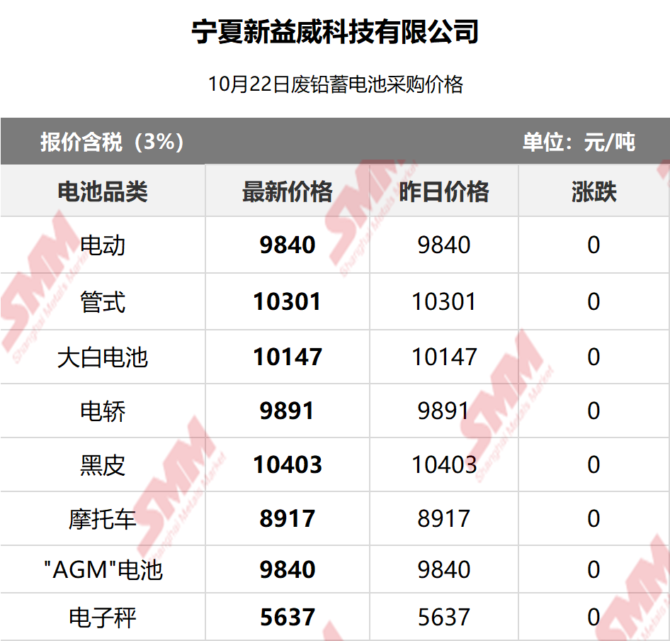 10月22日宁夏新益威 废电瓶采购报价