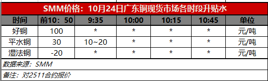 10月24日广东铜现货市场各时段升贴水(第四时段10:50)【SMM价格】