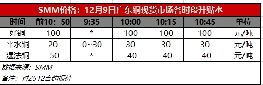 12月9日广东铜现货市场各时段升贴水(第四时段10:45)【SMM价格】