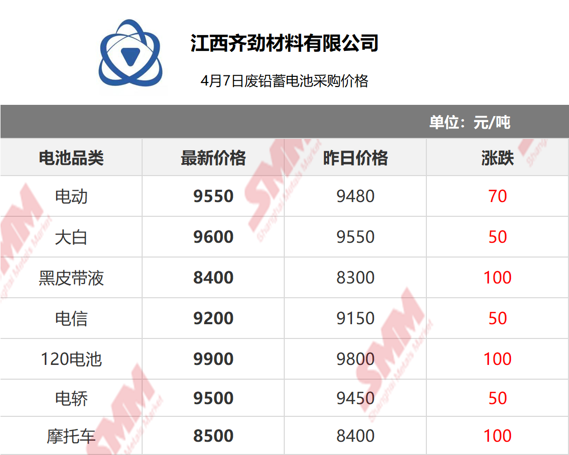 SMM 2026/4/7 国内知名再生铅企业废电瓶采购报价