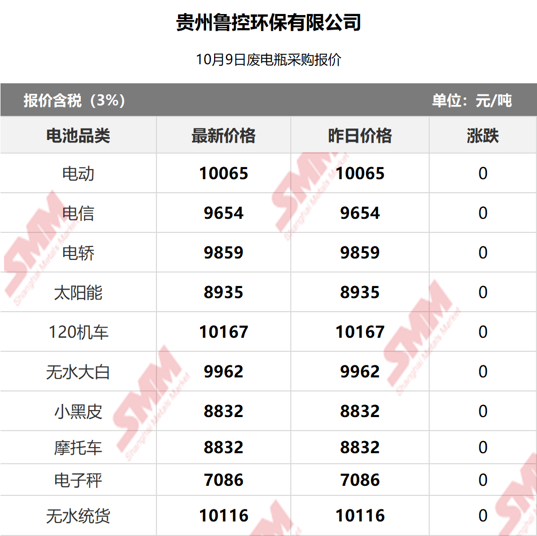 SMM 2025/10/13 国内知名再生铅企业废电瓶采购报价