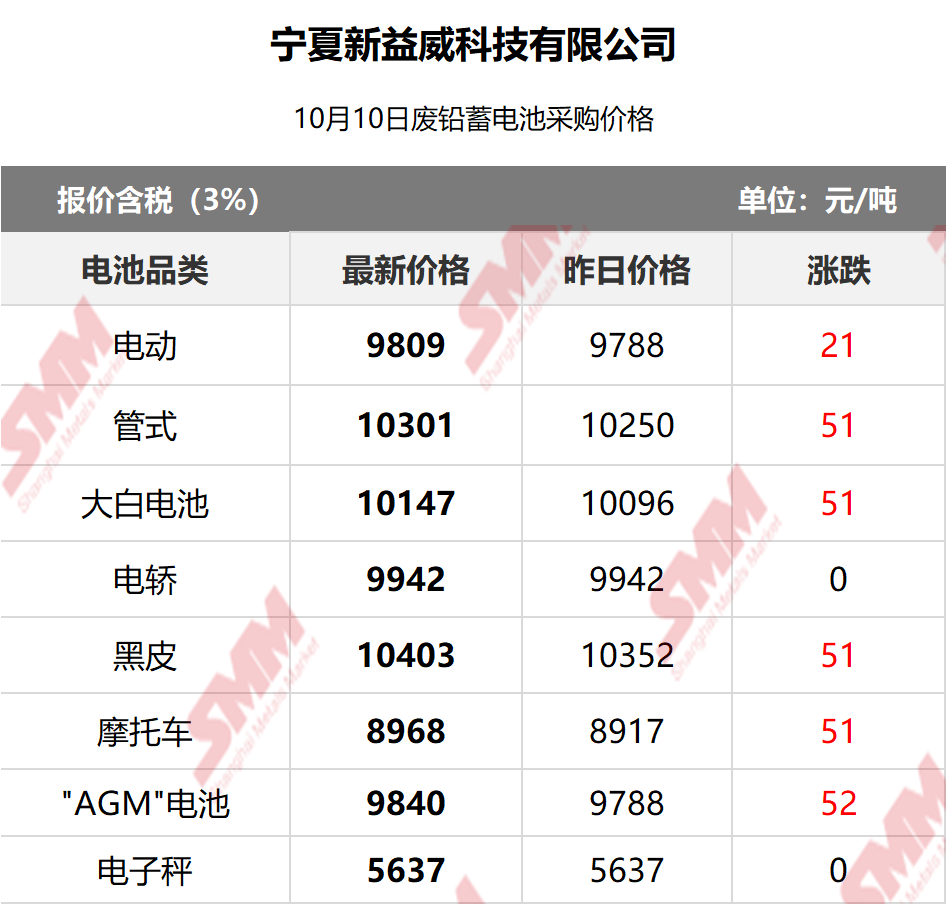 10月10日宁夏新益威 废电瓶采购报价