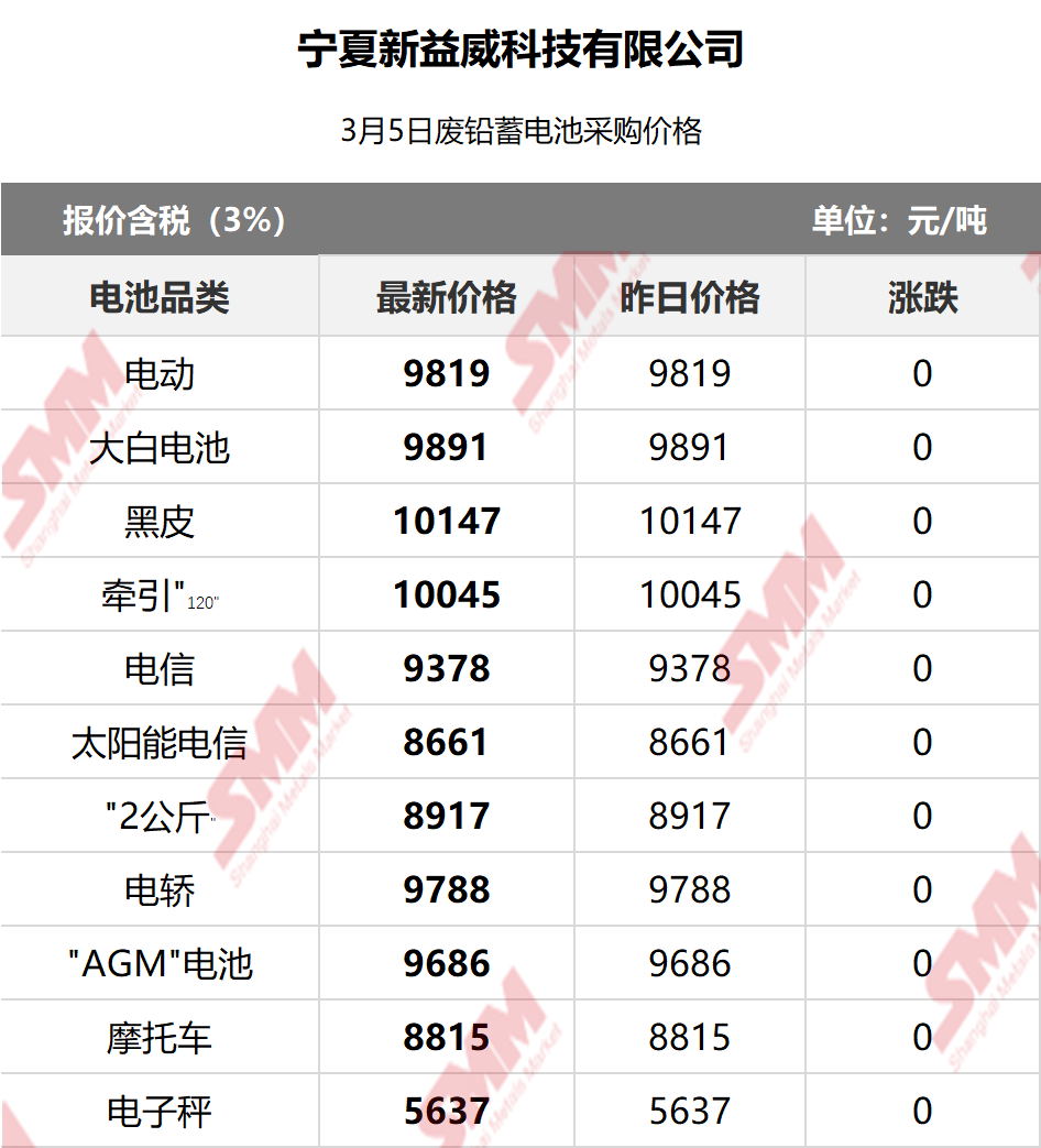 SMM 2026/4/3 国内知名再生铅企业废电瓶采购报价