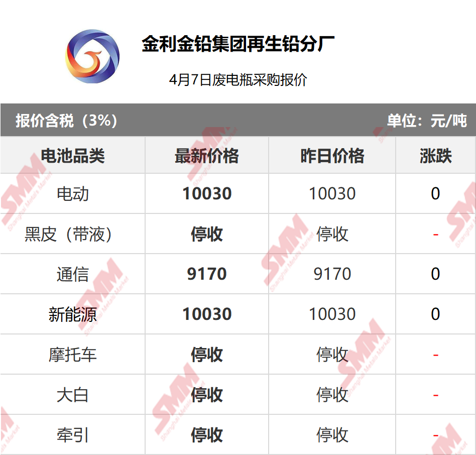 SMM 2026/4/7 国内知名再生铅企业废电瓶采购报价