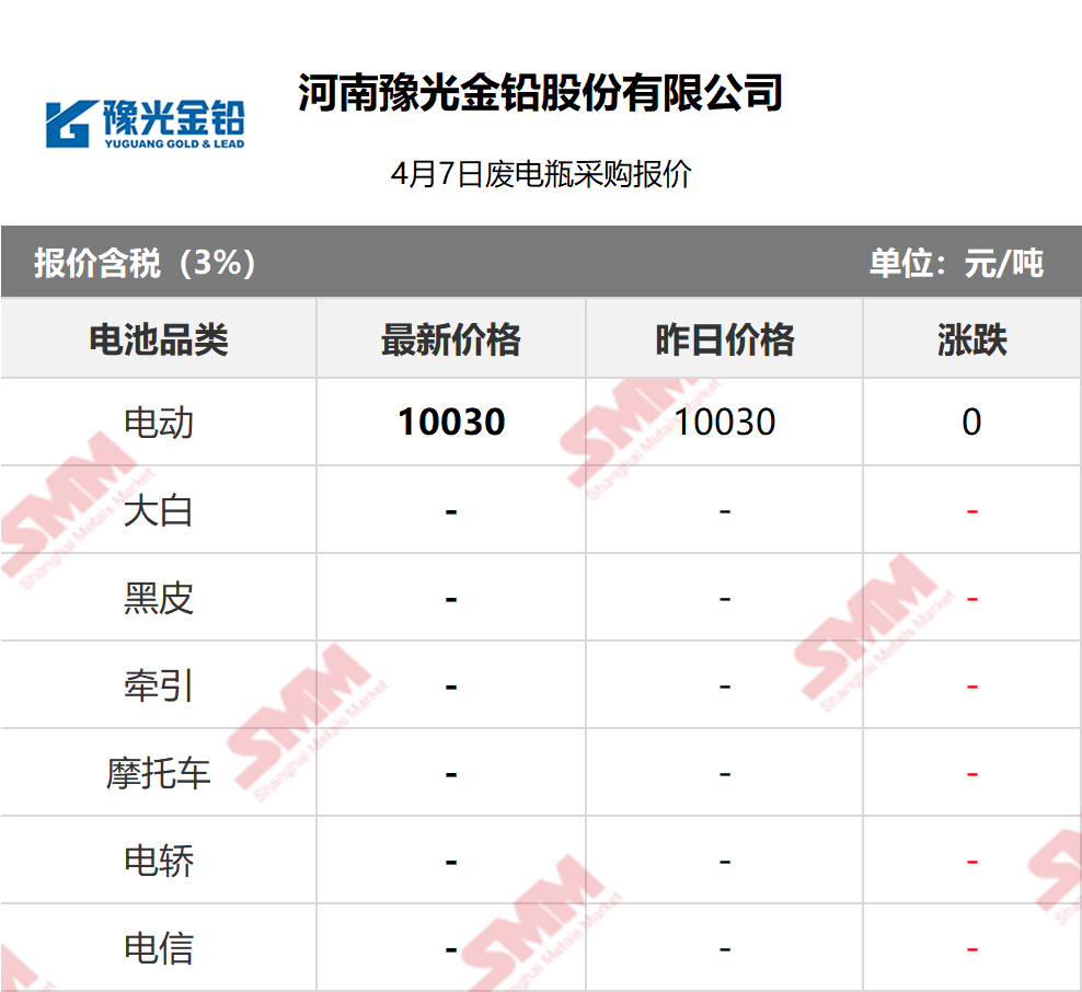 SMM 2026/4/7 国内知名再生铅企业废电瓶采购报价