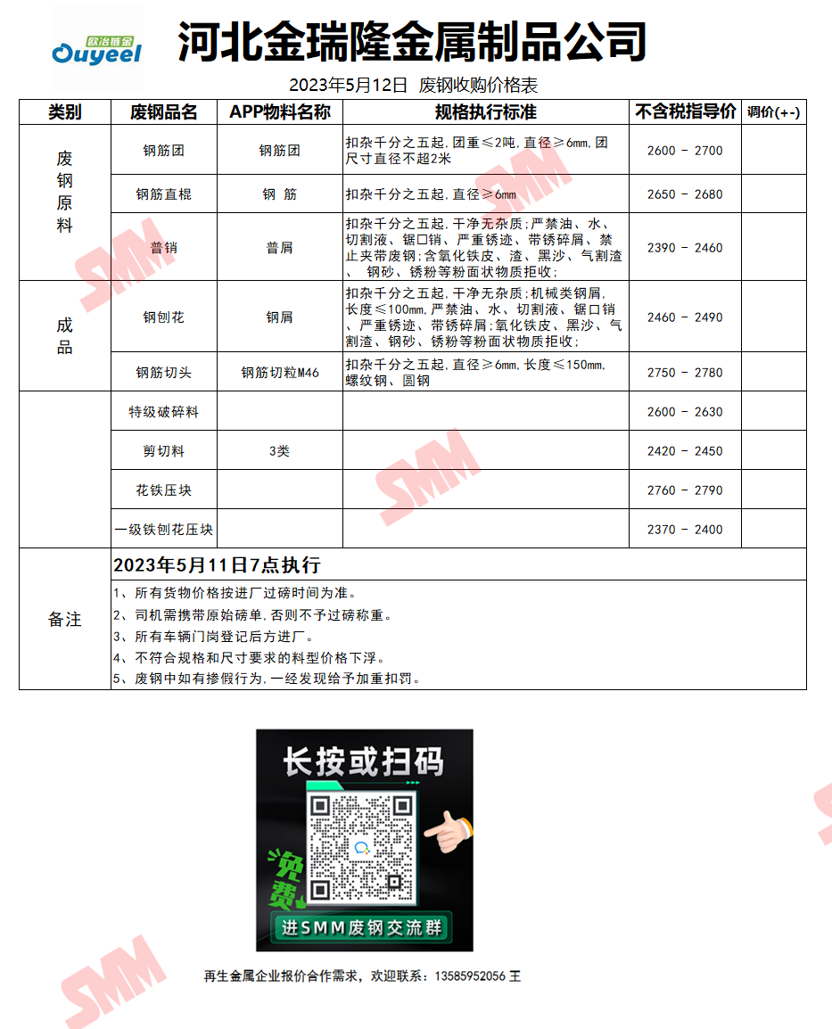 5月12日河北金瑞隆钢铁 废钢收购报价