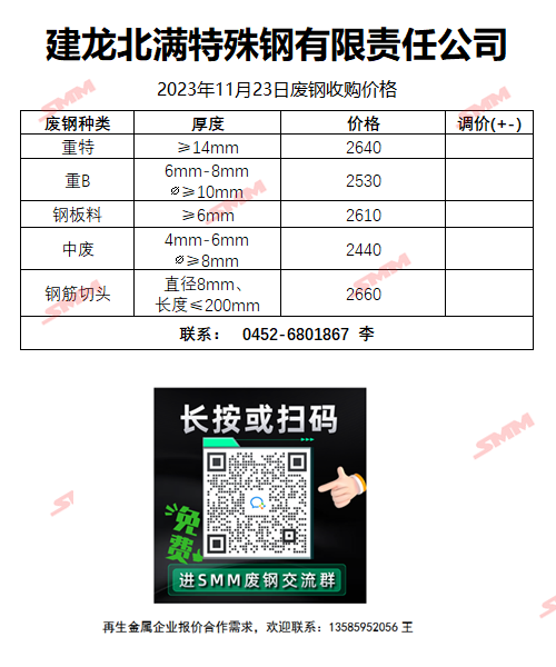 今日建龙北满钢铁 废钢收购报价已更新,有货的朋友欢迎联系我们!