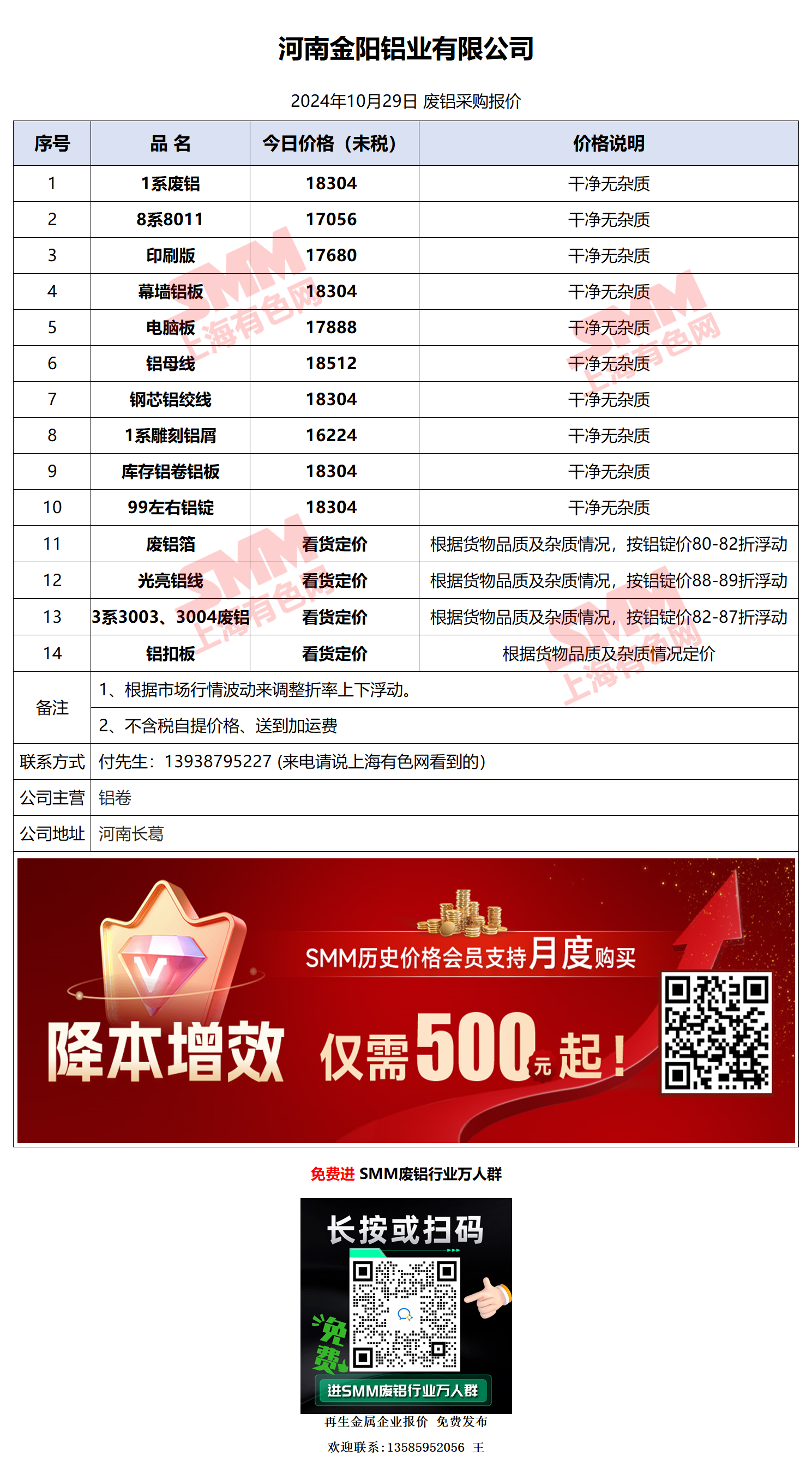 今日河南金阳铝业 废铝采购报价已更新,有货的朋友欢迎联系我们!