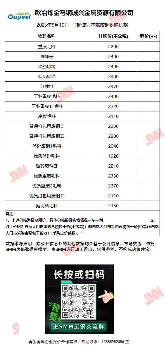 9月10日马钢诚兴 废钢收购报价