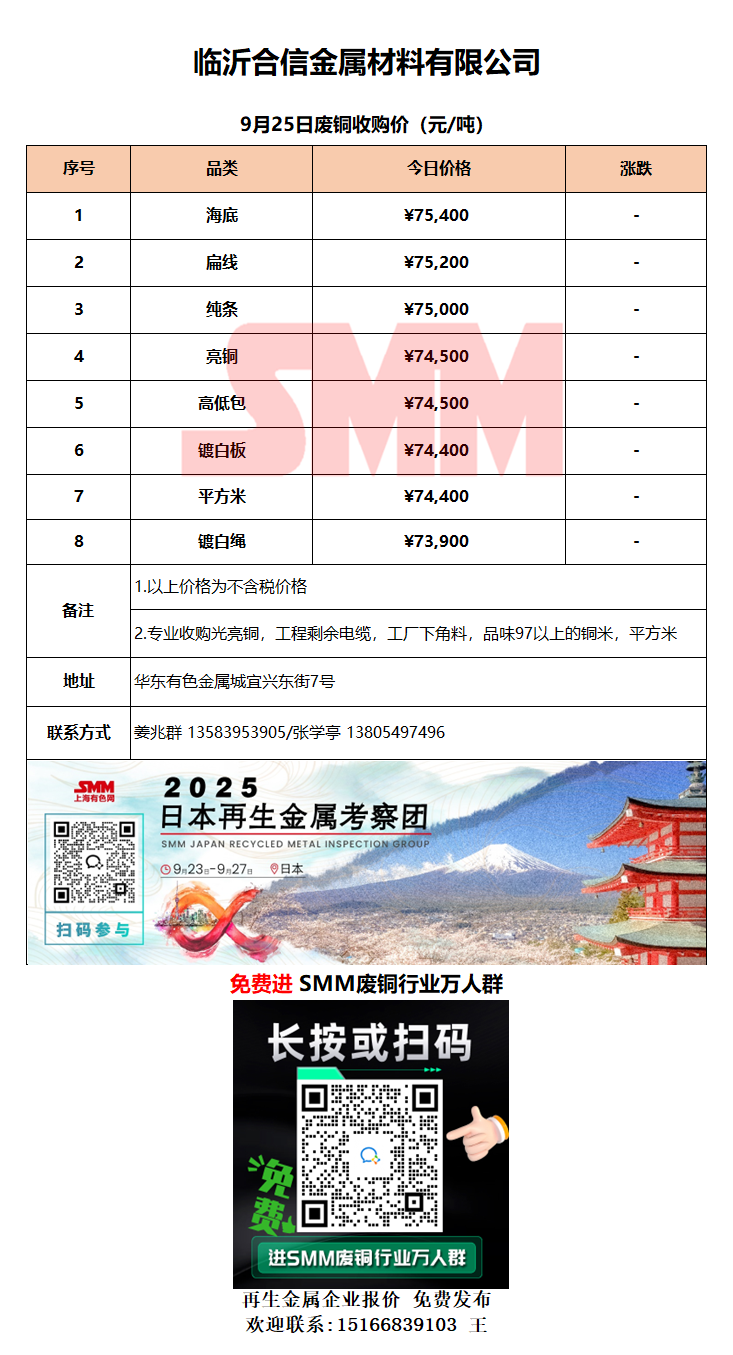 今日临沂合信金属 废铜采购报价已更新,有货的朋友欢迎联系我们!