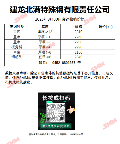 今日建龙北满钢铁 废钢收购报价已更新,有货的朋友欢迎联系我们!