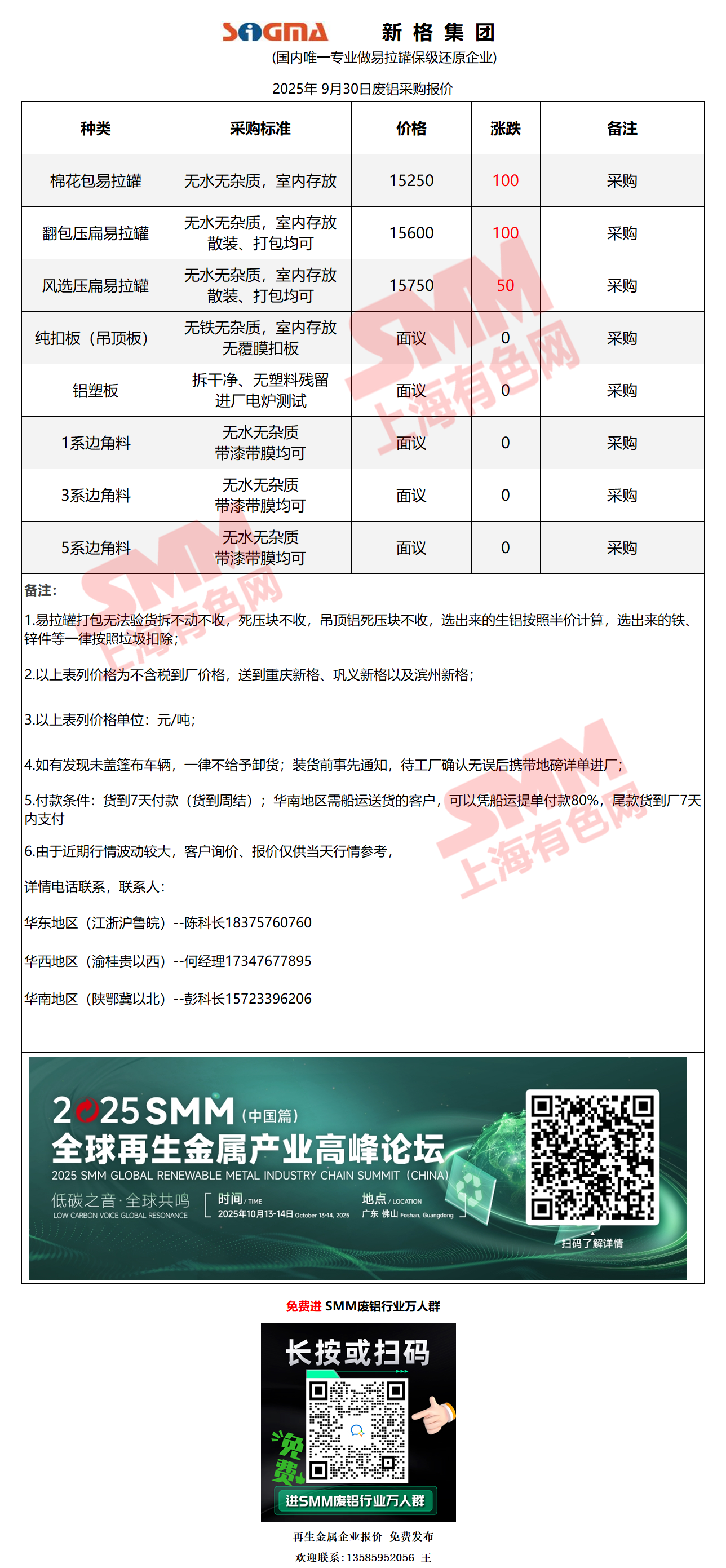 今日新格集团 废铝采购报价已更新,有货的朋友欢迎联系我们!