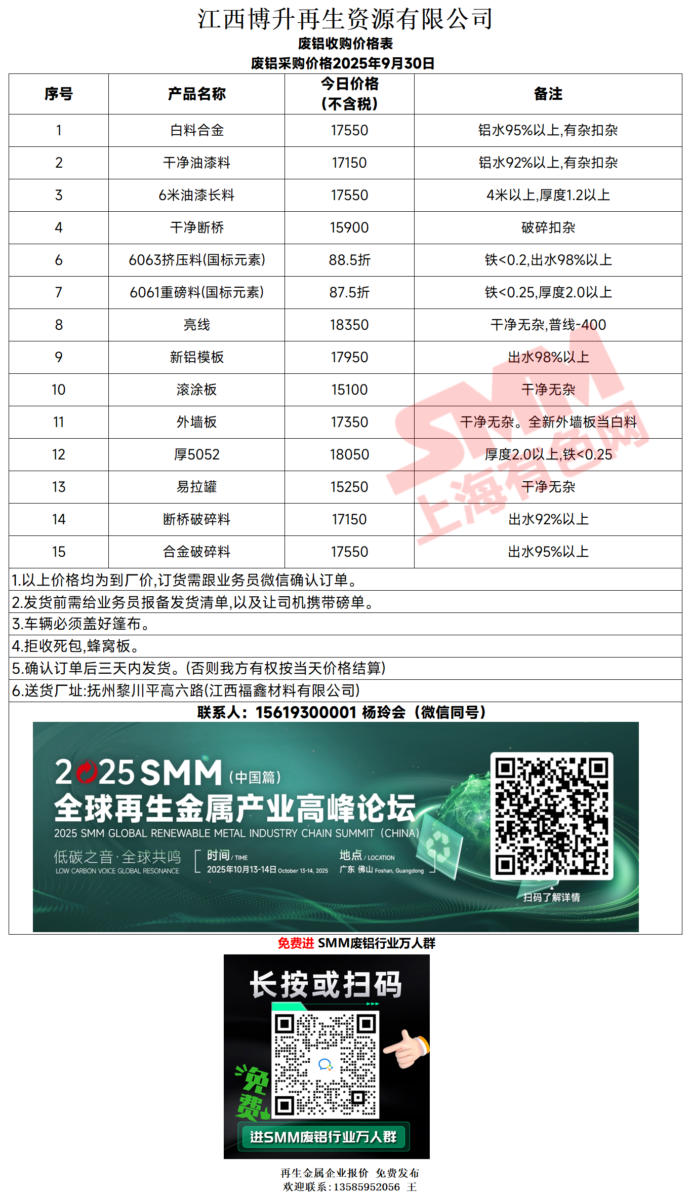 今日江西博升 废铝采购报价已更新,有货的朋友欢迎联系我们!