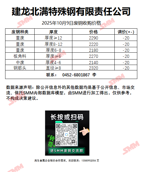 今日建龙北满钢铁 废钢收购报价已更新,有货的朋友欢迎联系我们!
