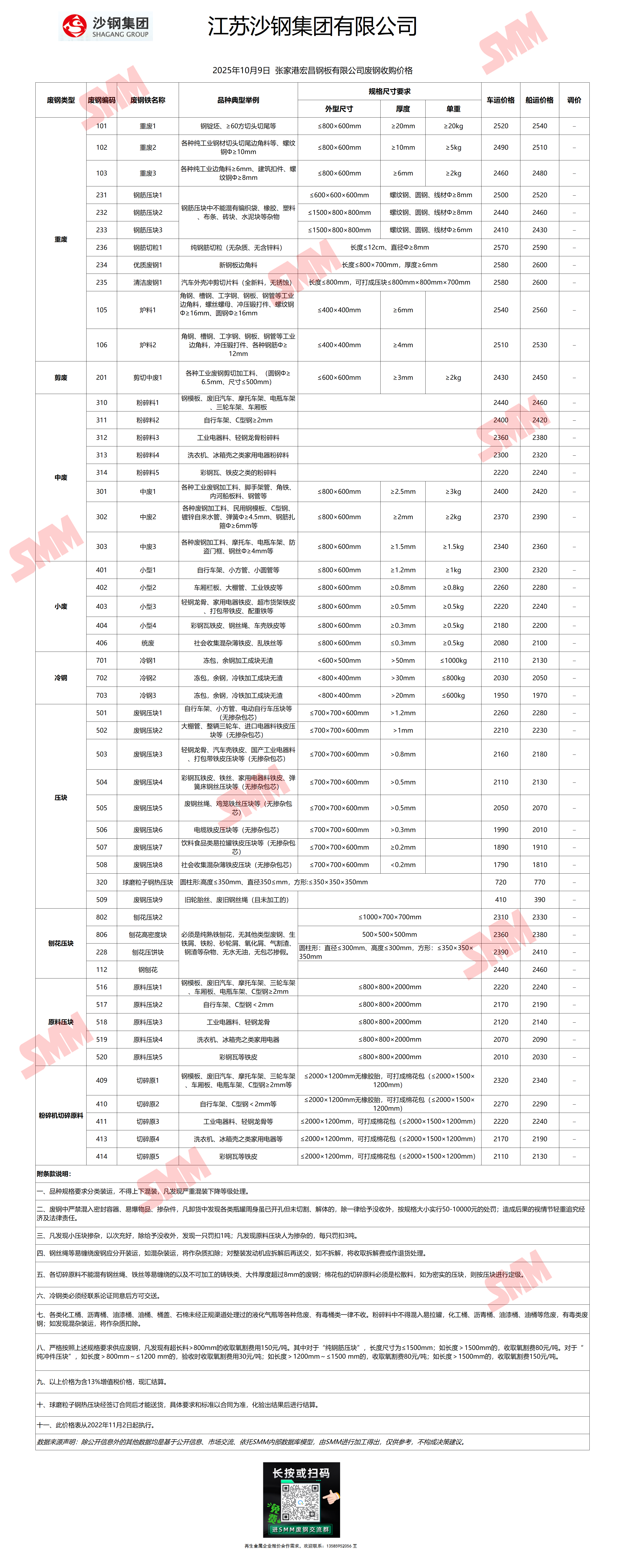 今日沙钢张家港基地 废钢收购报价已更新,有货的朋友欢迎联系我们!