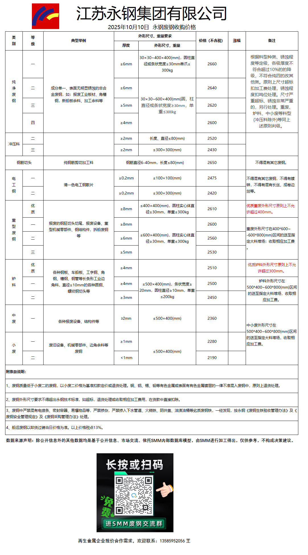 今日江苏永钢 废钢收购报价已更新,有货的朋友欢迎联系我们!