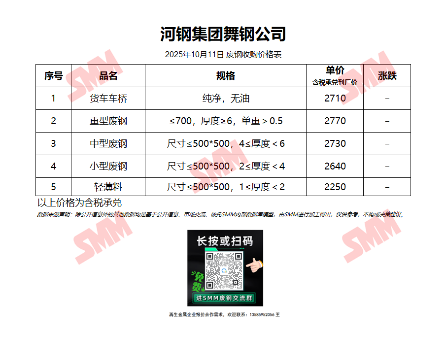 10月11日河钢集团舞钢公司 废钢收购报价