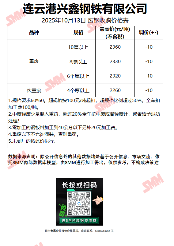 10月13日14时36分连云港兴鑫 废钢收购报价
