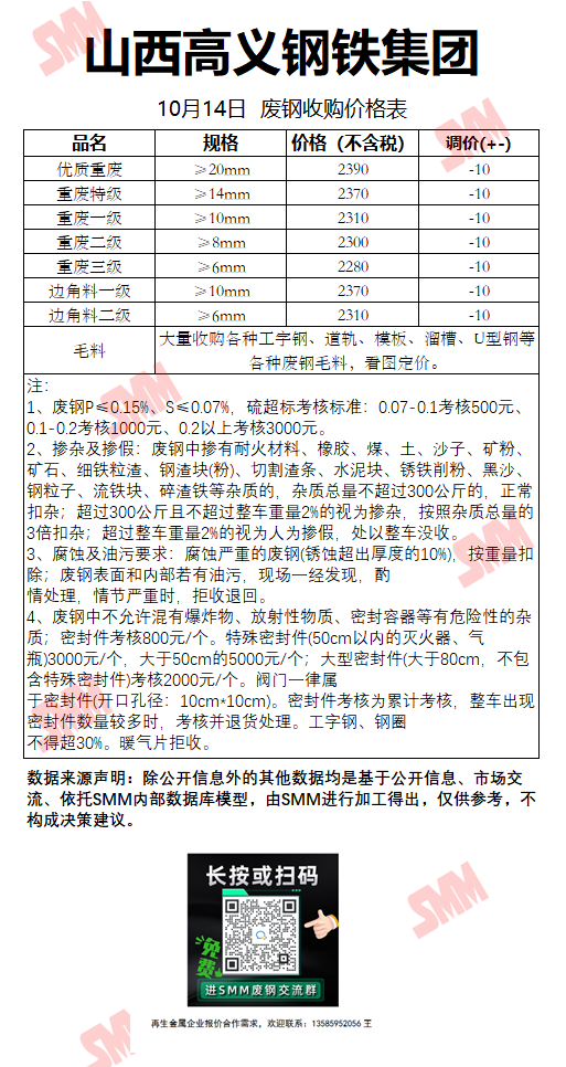 今日山西高义 废钢收购报价已更新,有货的朋友欢迎联系我们!