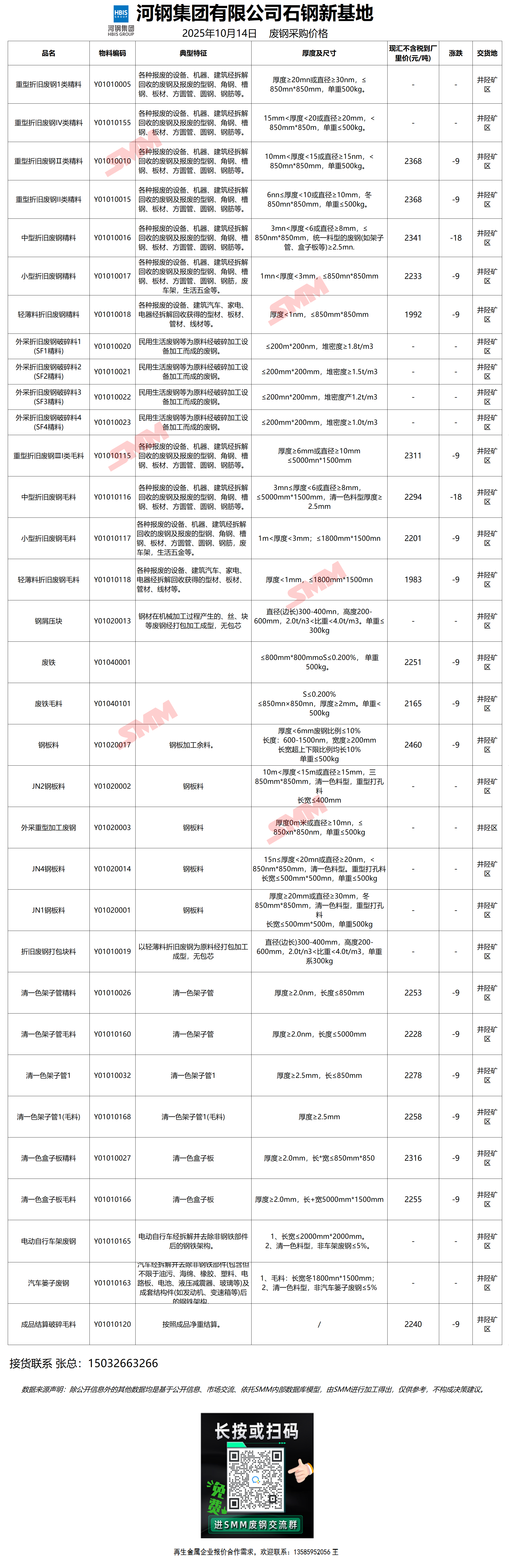 10月14日10时30分 河钢石钢新基地 废钢采购报价