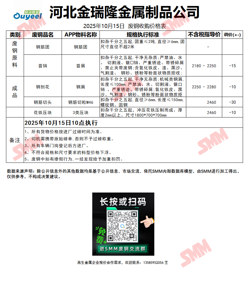 10月15日河北金瑞隆钢铁 废钢收购报价