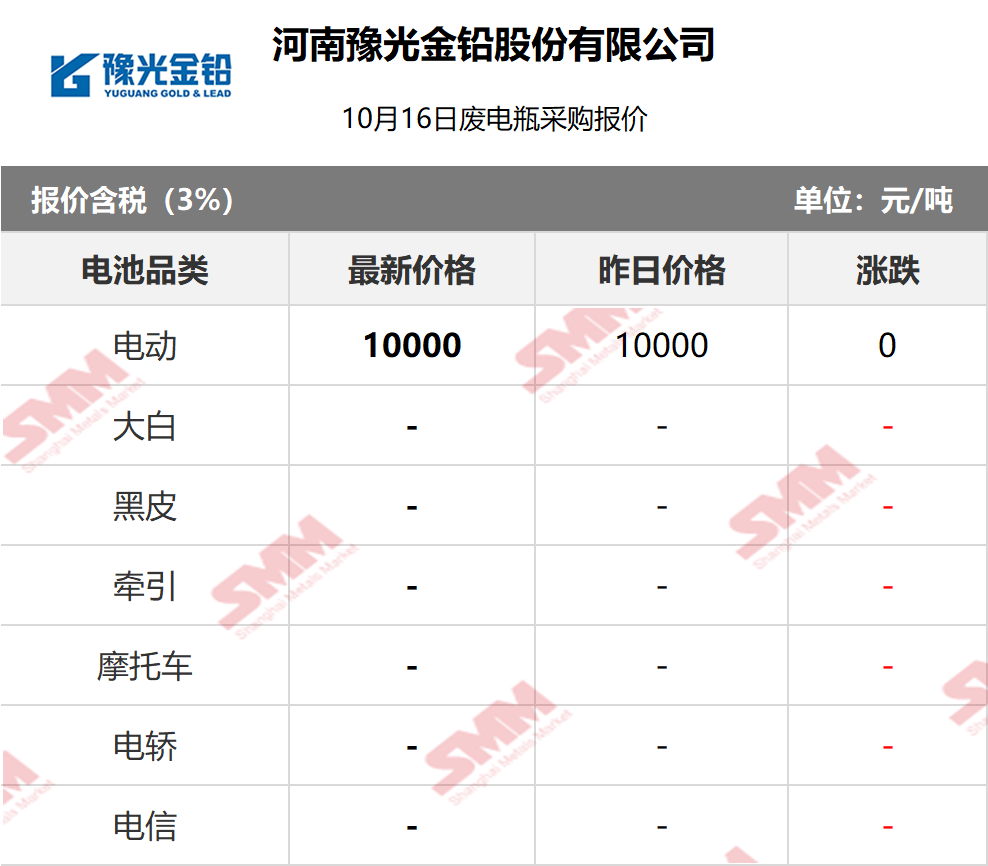 SMM 2025/10/16 国内知名再生铅企业废电瓶采购报价