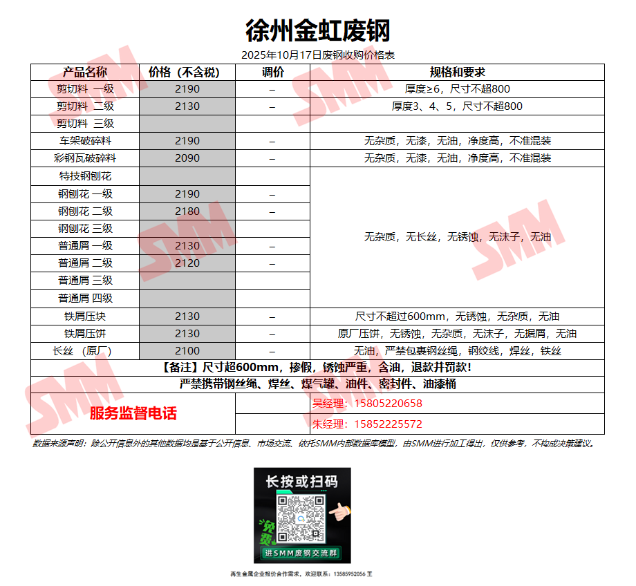 今日徐州金虹 废钢收购报价已更新,有货的朋友欢迎联系我们!