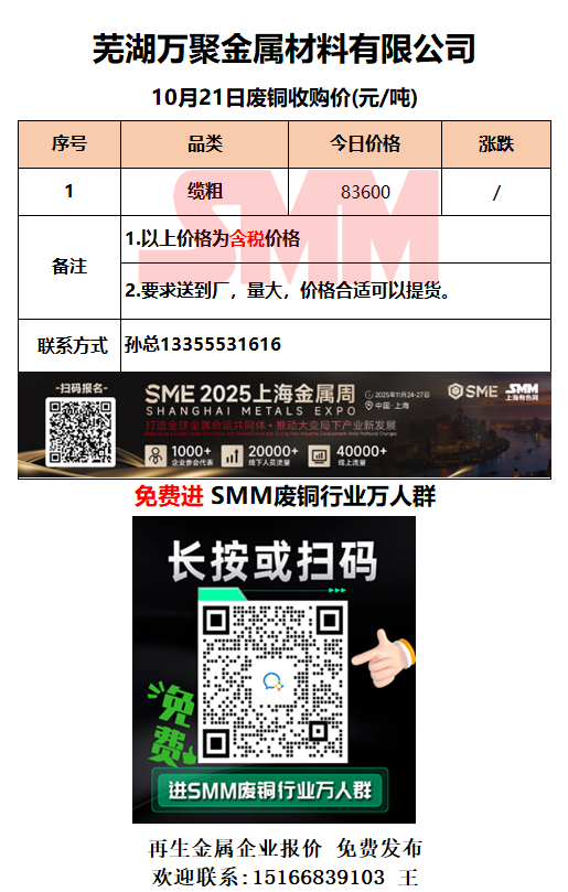 今日芜湖万聚金属 废铜采购报价已更新,有货的朋友欢迎联系我们!