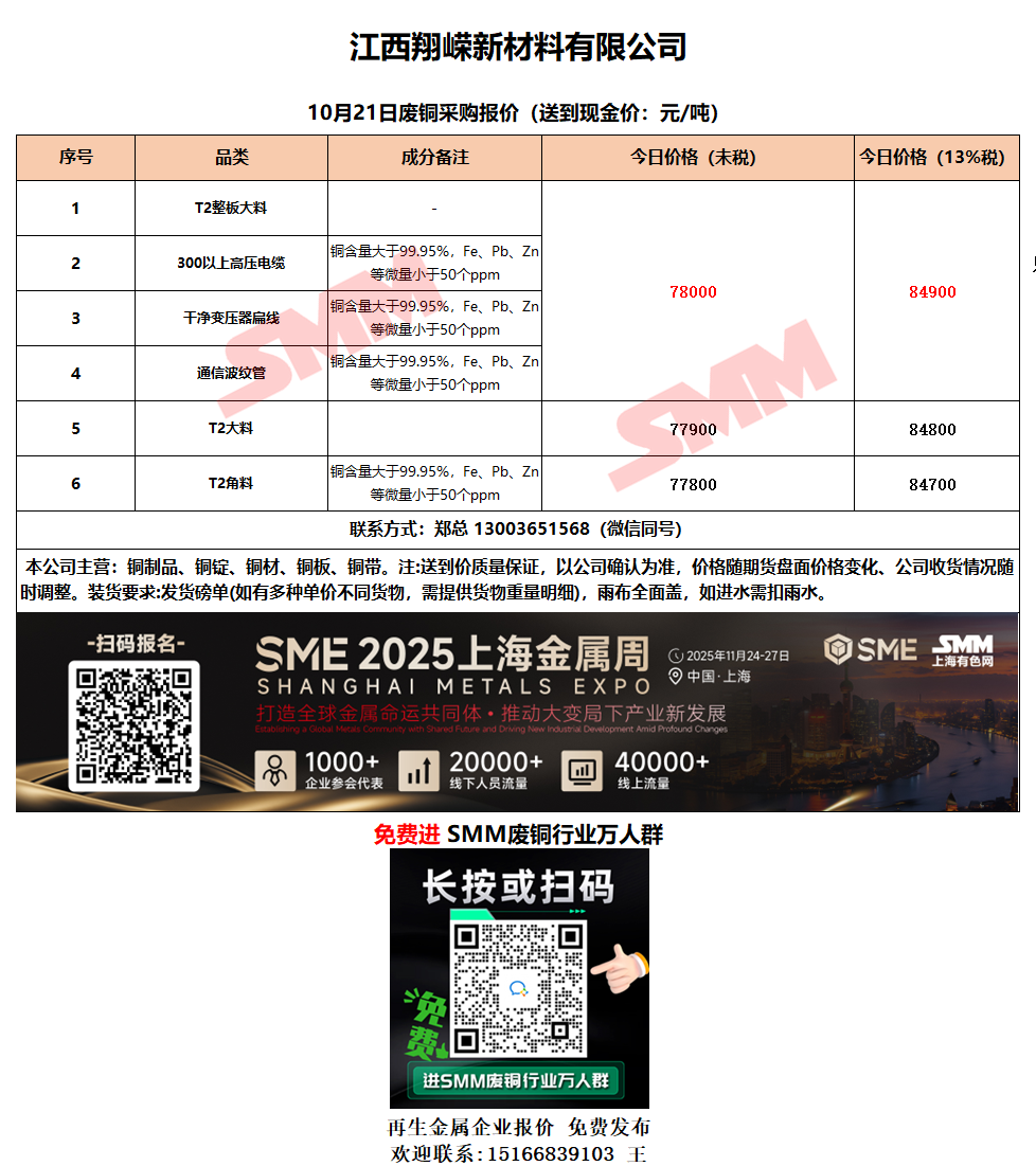 今日江西翔嵘新材料 废铜采购报价已更新,有货的朋友欢迎联系我们!