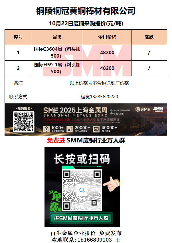 今日铜陵铜冠 废铜采购报价已更新,有货的朋友欢迎联系我们!